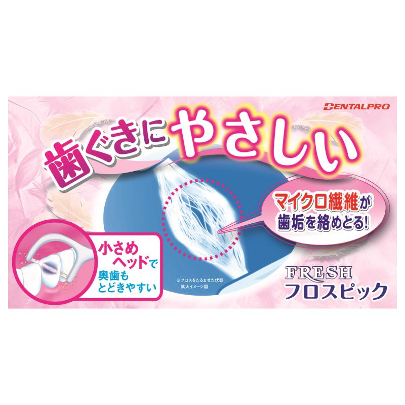 ●フロス部分に「きめの細かい ふんわり繊維」を採用することで歯肉を傷つけにくく、タオルで拭き取るように歯垢を丁寧に絡め取