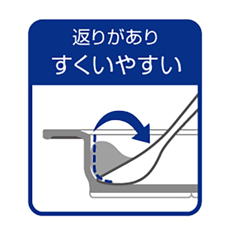 あたたかみのある木目調で、軽量で割れにくいプラスチック製の食器です。加熱後も熱くなりにくい。返りがあるのですくいやすい。すべり止め付きでしっかり安定。広めのフチでもちやすい。左右両利き対応。