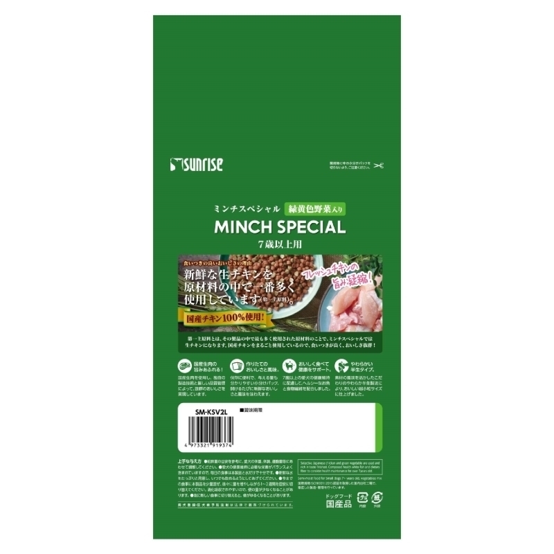 ・国産チキンをまるごと使用しているので、食いつきが良く、おいしさ抜群、緑黄色野菜入りの半生フードです