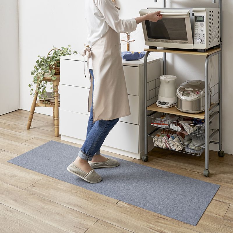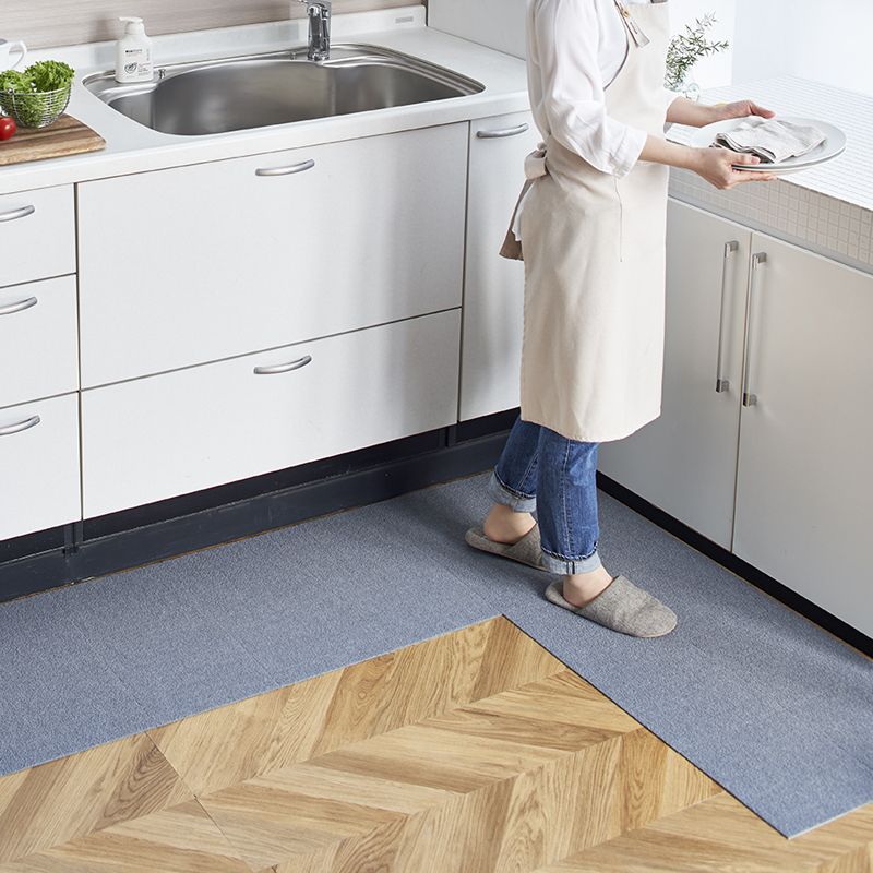 必要な箇所に必要な分だけ貼れる、小さいサイズのキッチンマットです。撥水加工を施しています。