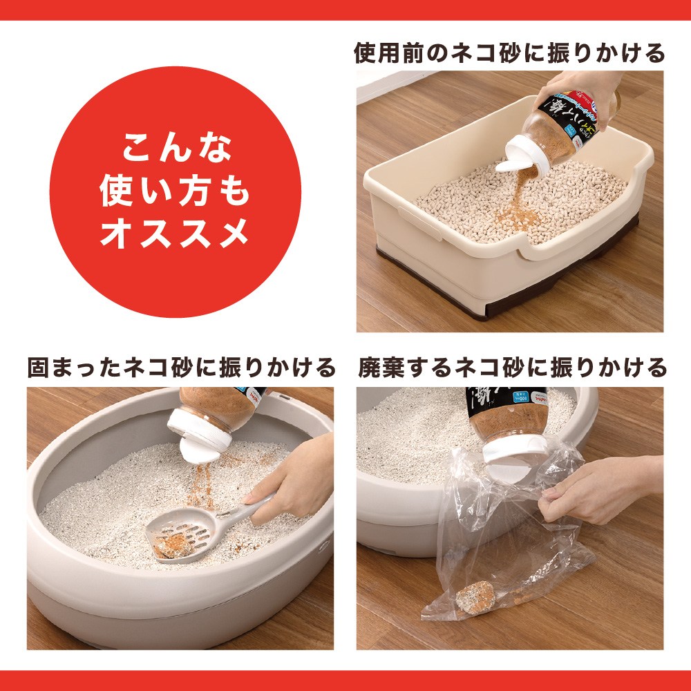 ・普段の猫砂に混ぜて使用することで、おしっこの臭いを強力消臭!