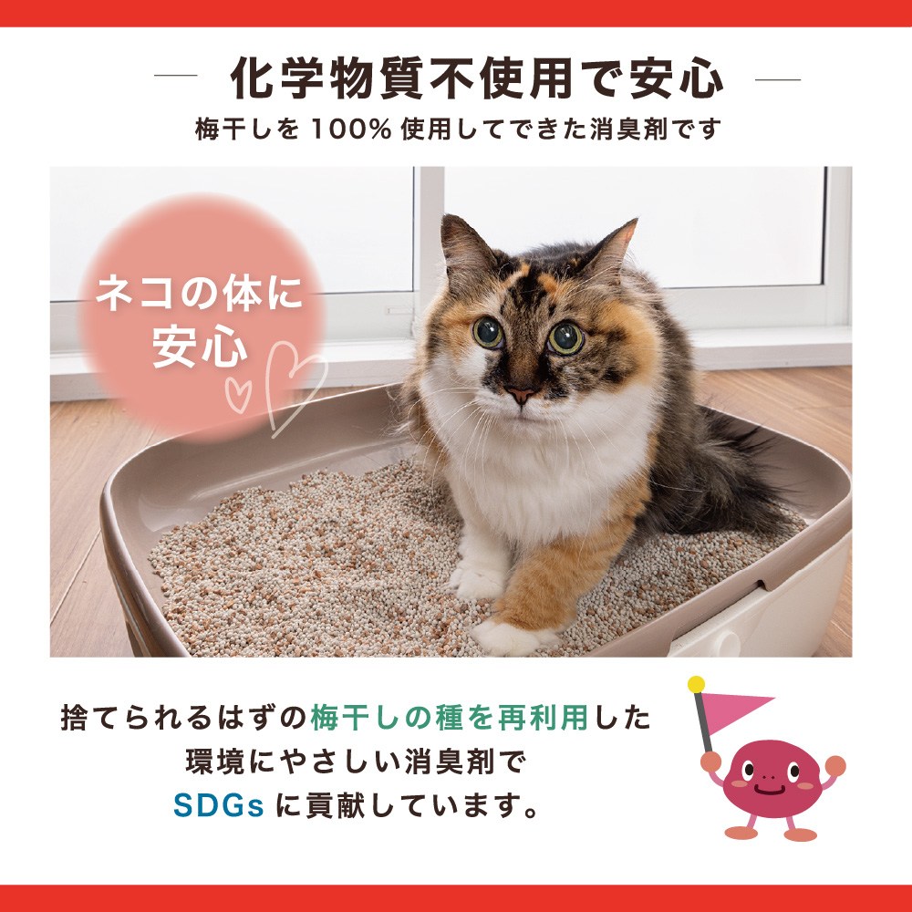 ・日本製 梅干しの種に驚きの消臭力!この種を使った猫砂です。