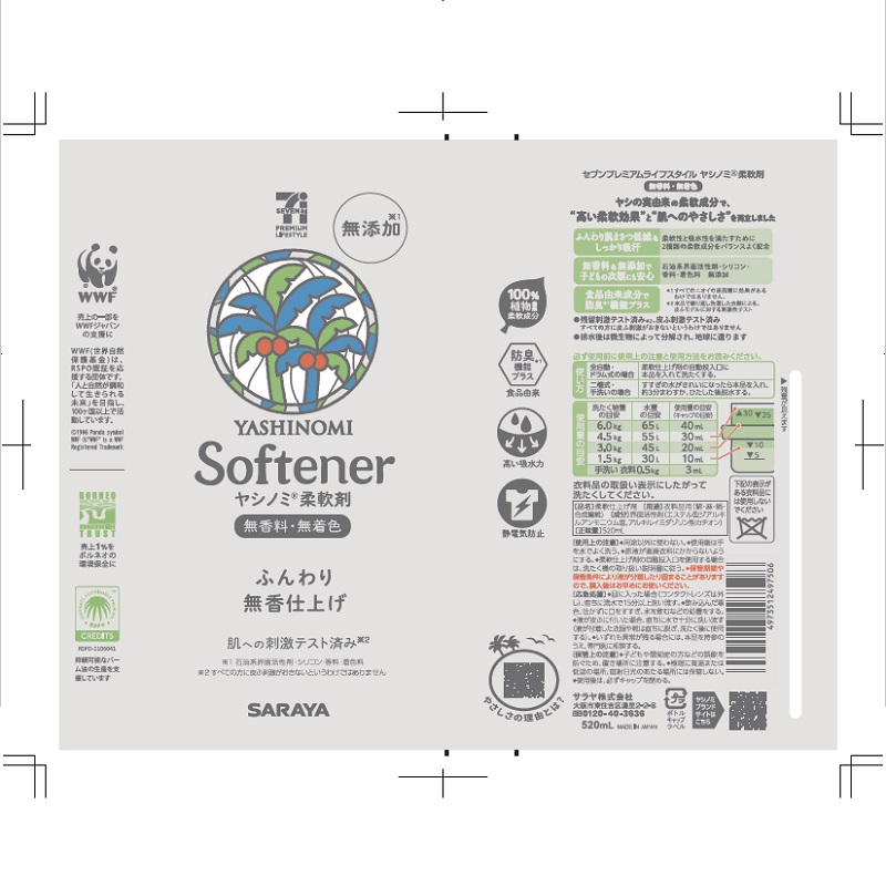 手肌と地球にやさしいヤシノミブランドのサラヤと共同開発した柔軟剤の本体です。