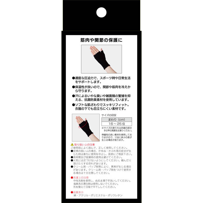 適度な圧迫力で、スポーツ時や日常生活をサポートする手の甲用サポーターです。