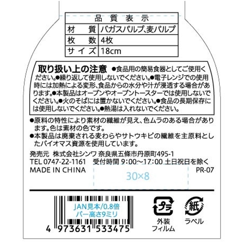 環境に配慮し、植物繊維バガス・麦わらを主原料にしています。