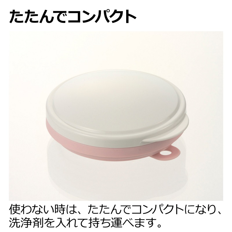 使わない時は、たたんでコンパクトになり、洗浄剤を入れて持ち運べます。