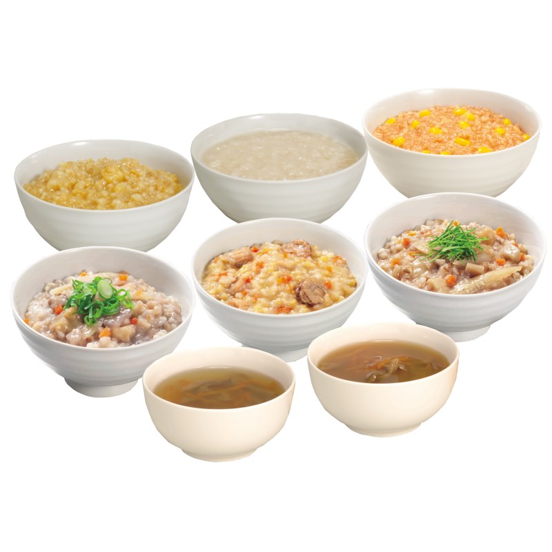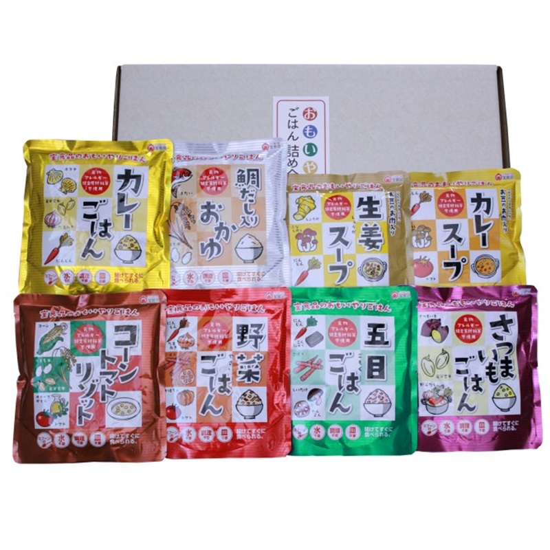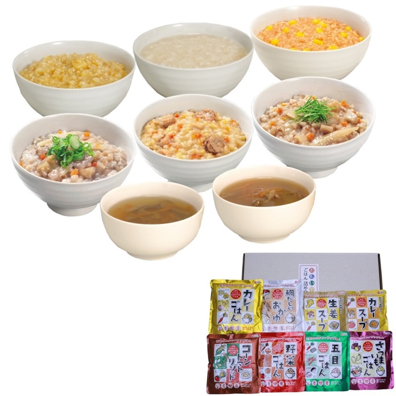 - 五目ごはん・野菜ごはん・カレーごはん・さつまいもごはん・鯛だし入りおかゆ 各260g×1、