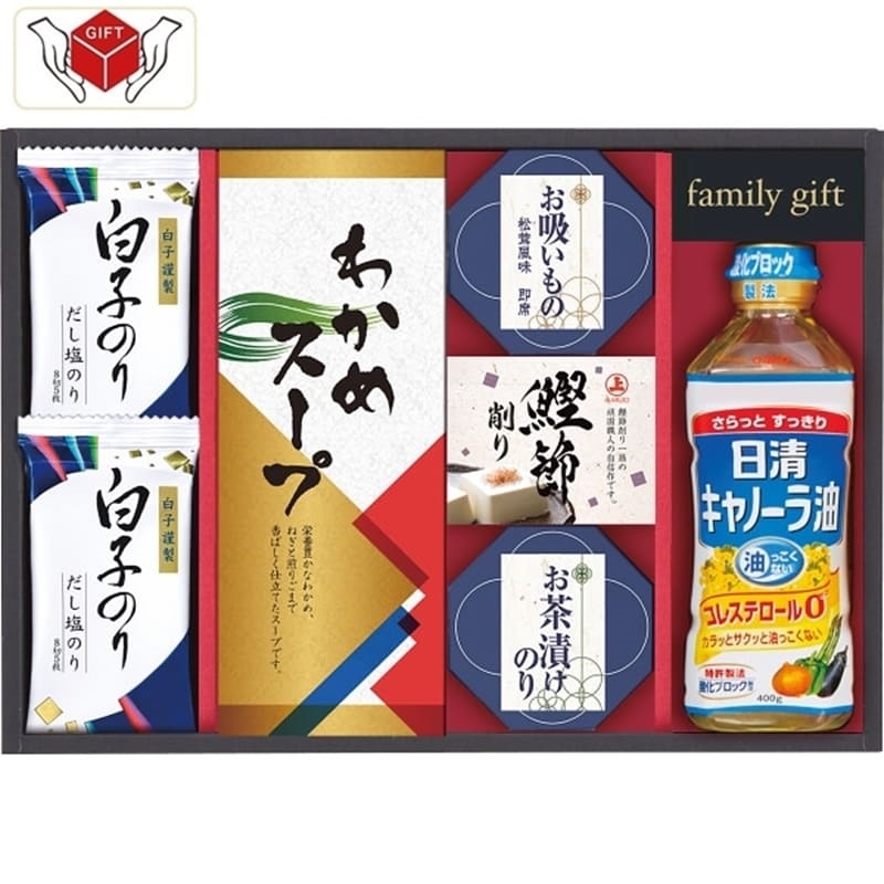 永谷園お茶漬けのり(4.7g×2)・鰹節削り(1.5g×2)・日清キャノーラ油400g×各1