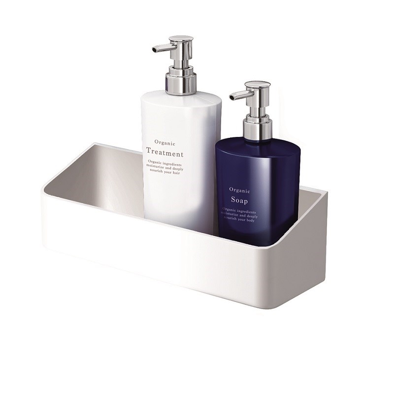 ボトルやチューブ類等々、浴用小物をすっきりひとまとめ。
