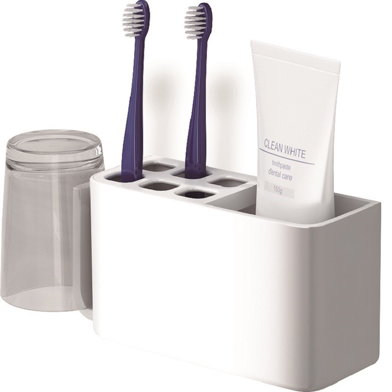 耐荷重1kg。歯ブラシやコップなど歯磨き用品をスッキリ収納。