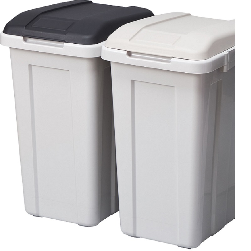 連結できる屋外用ペール。連結できて倒れにくい。スライド式の簡単連結で必要数を設置、フタカラーで簡単分別。ポリ袋止め付き。