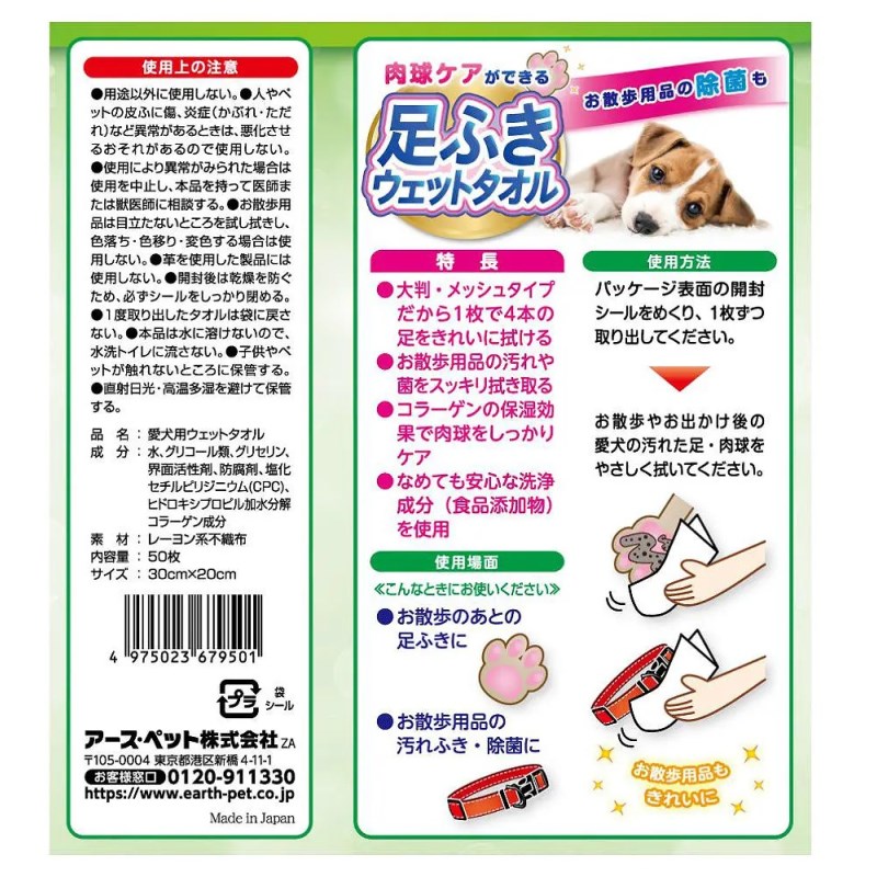 ・大判・メッシュタイプだから1枚で4本の足をきれいに拭ける犬用足ふきウェットタオルです。