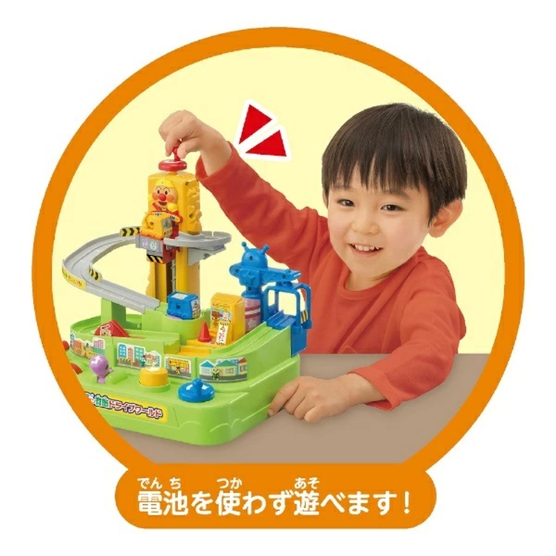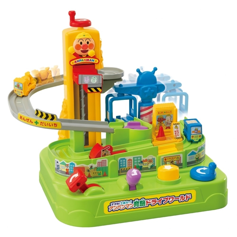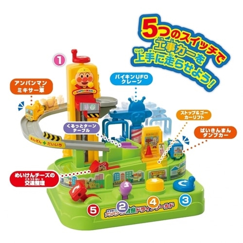 ・バイキンUFOクレーンに工事車を乗せたら青のノブを回して動かそう