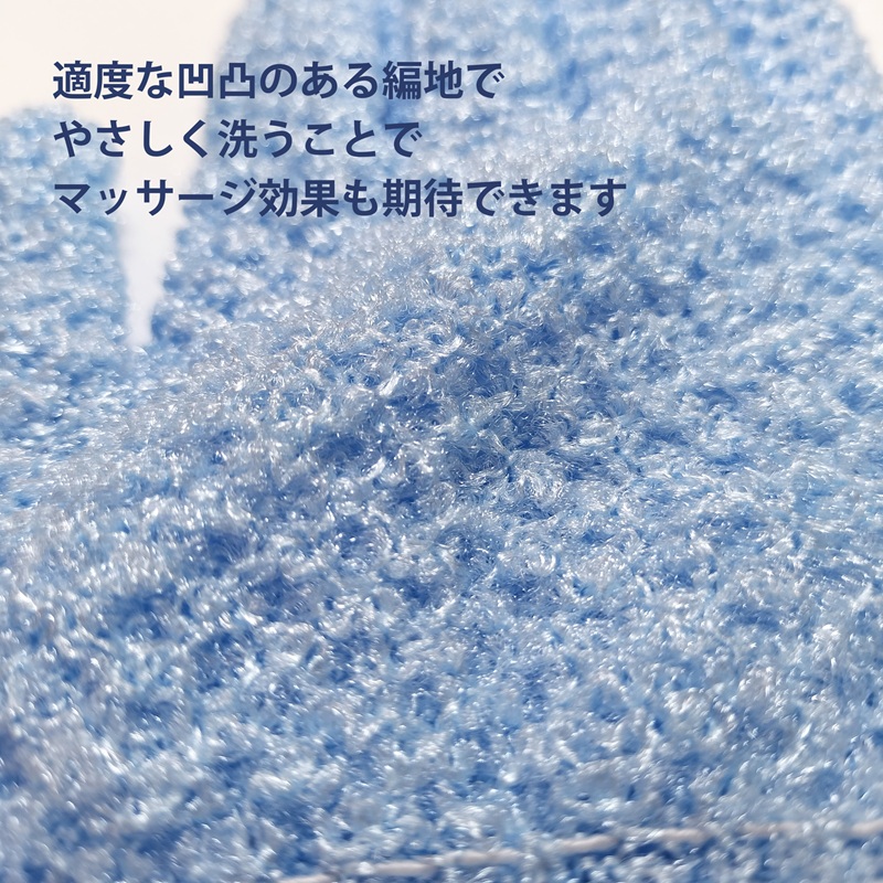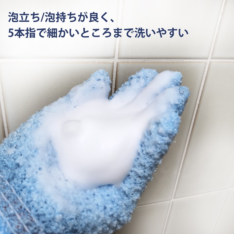 ・5本指タイプなので体のすみずみまでしっかり洗えます。