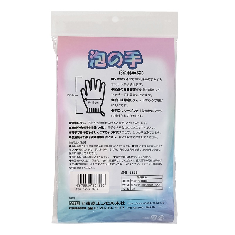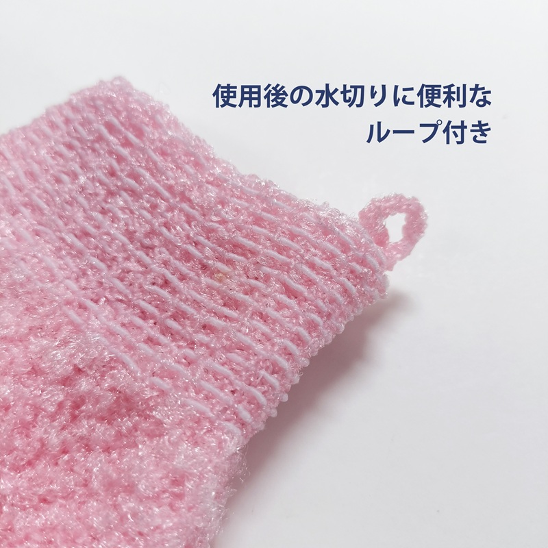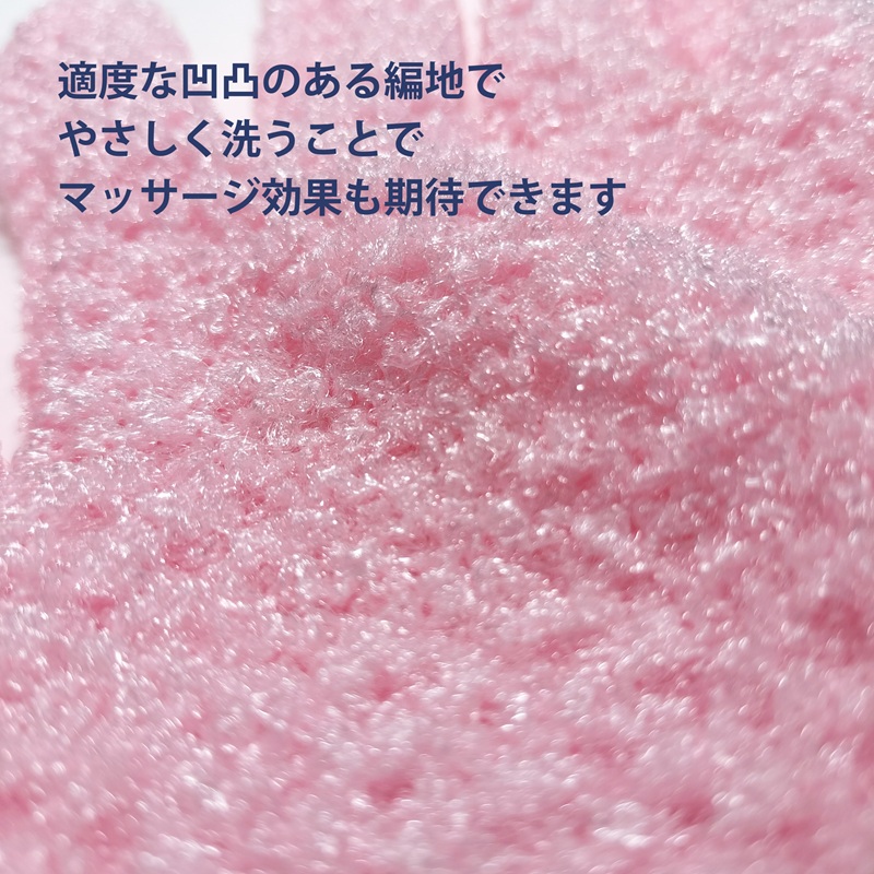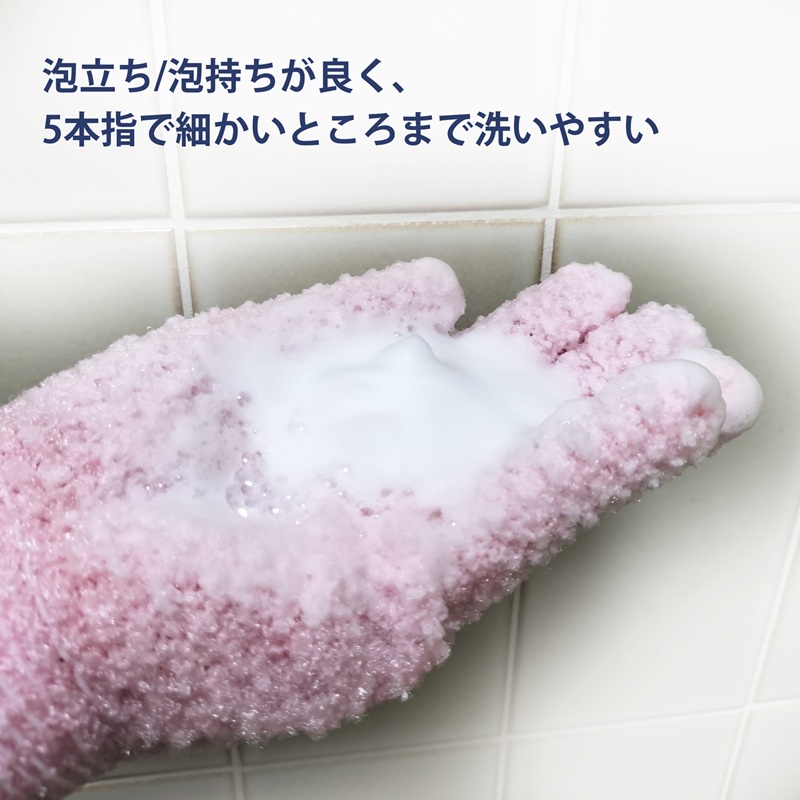 ・5本指タイプなので体のすみずみまでしっかり洗えます。