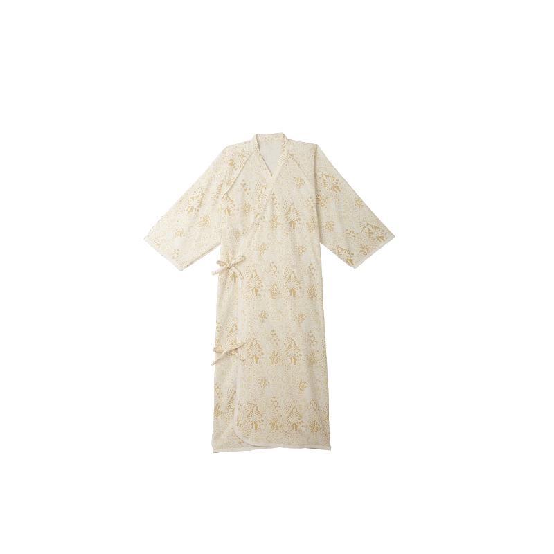 胸元がはだけない内側大きめボタン付き。袖通しがらくなラグラン袖。