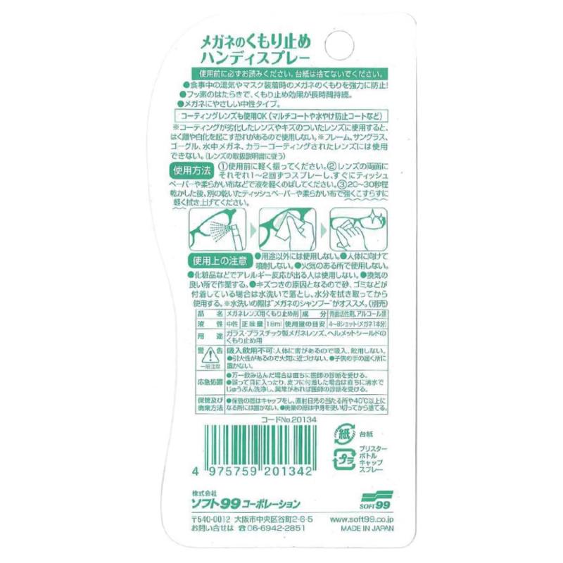 ●ガラス・プラスティック製レンズメガネ、ヘルメットシールドのくもり止め。