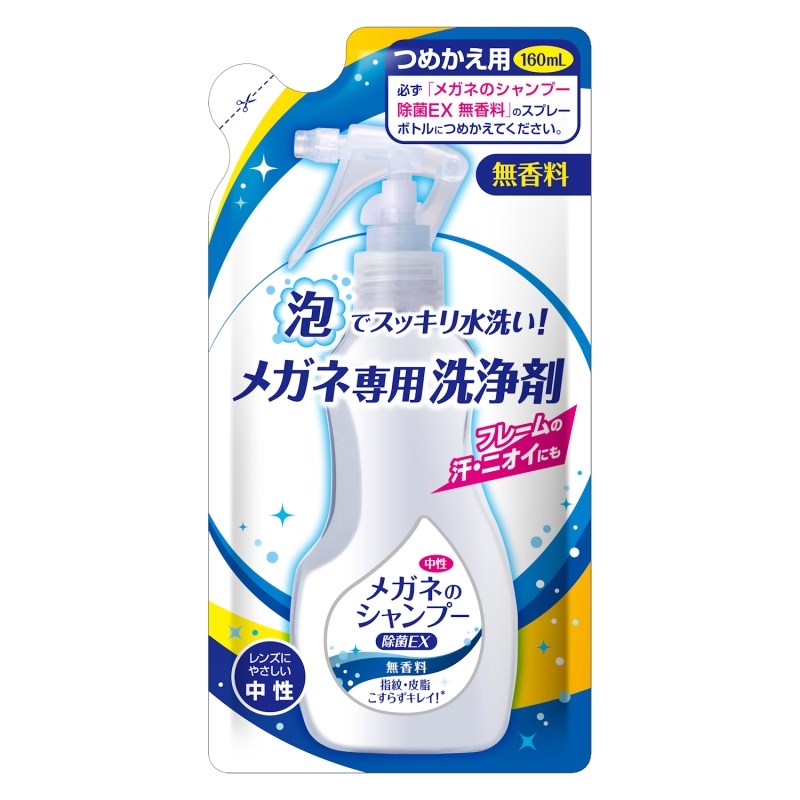 ●メガネのシャンプー除菌EX無香料のつめかえタイプ。