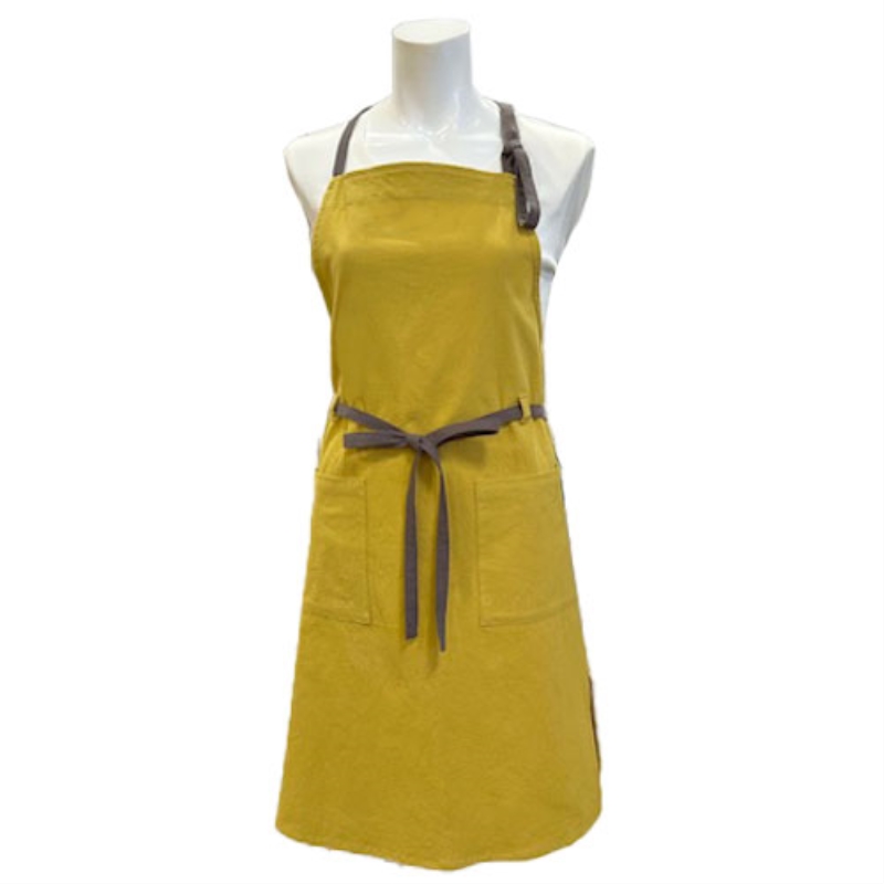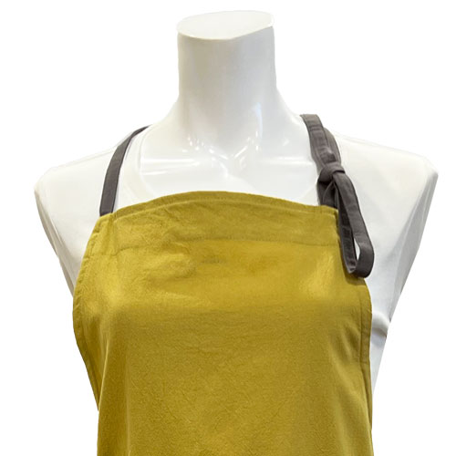 天然繊維を使用したナチュラルエプロンです。シワ感が特徴のワッシャー素材を使用しています。