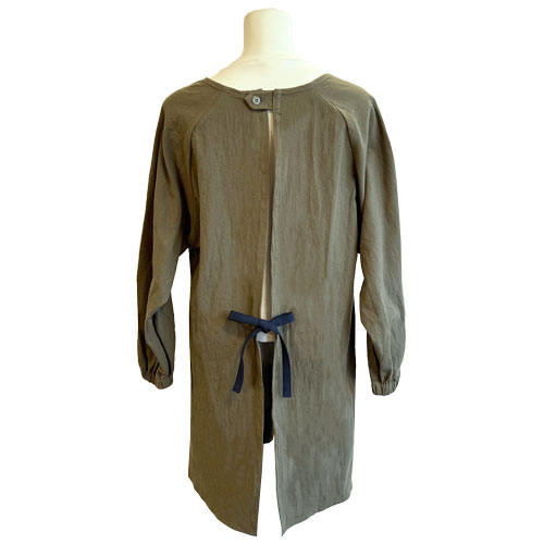 袖の付いたかっぽう着のデザインです。袖をまくり上げても落ちにくいゴム付き仕様です。