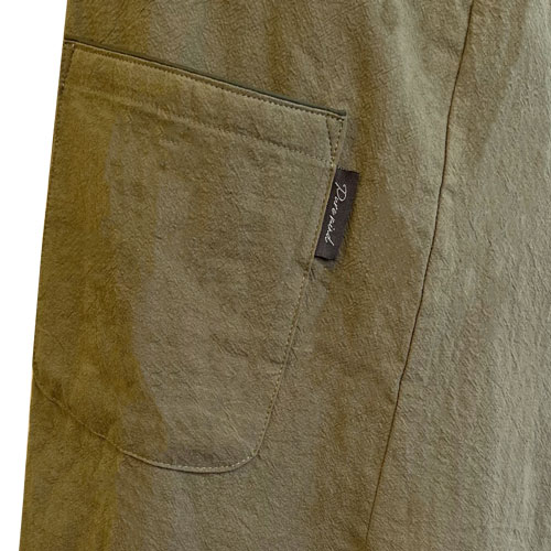 天然繊維を使用したナチュラルエプロンです。シワ感が特徴のワッシャー素材を使用しています。