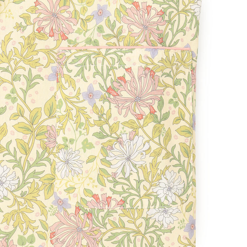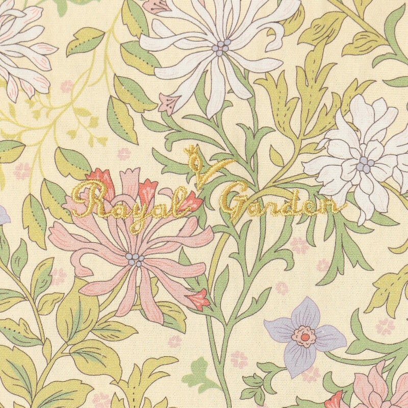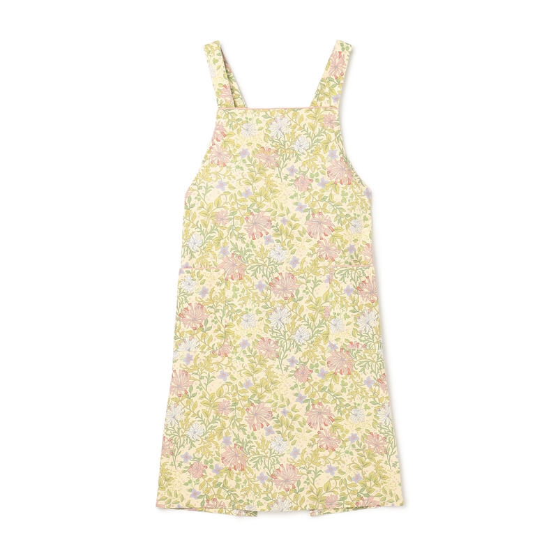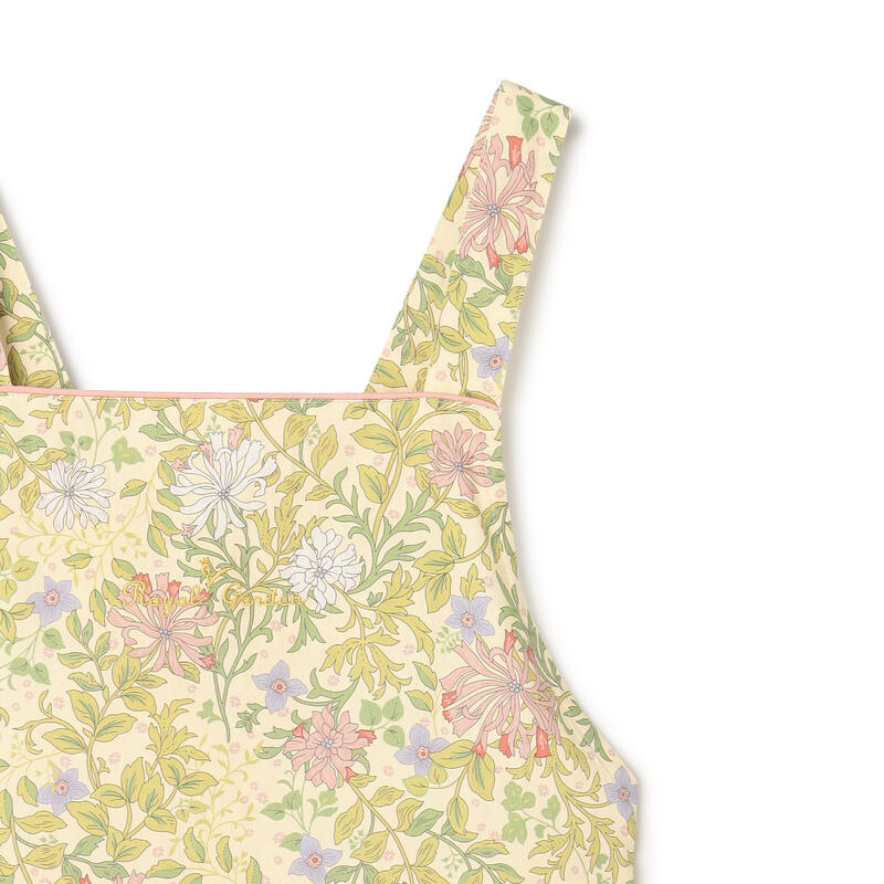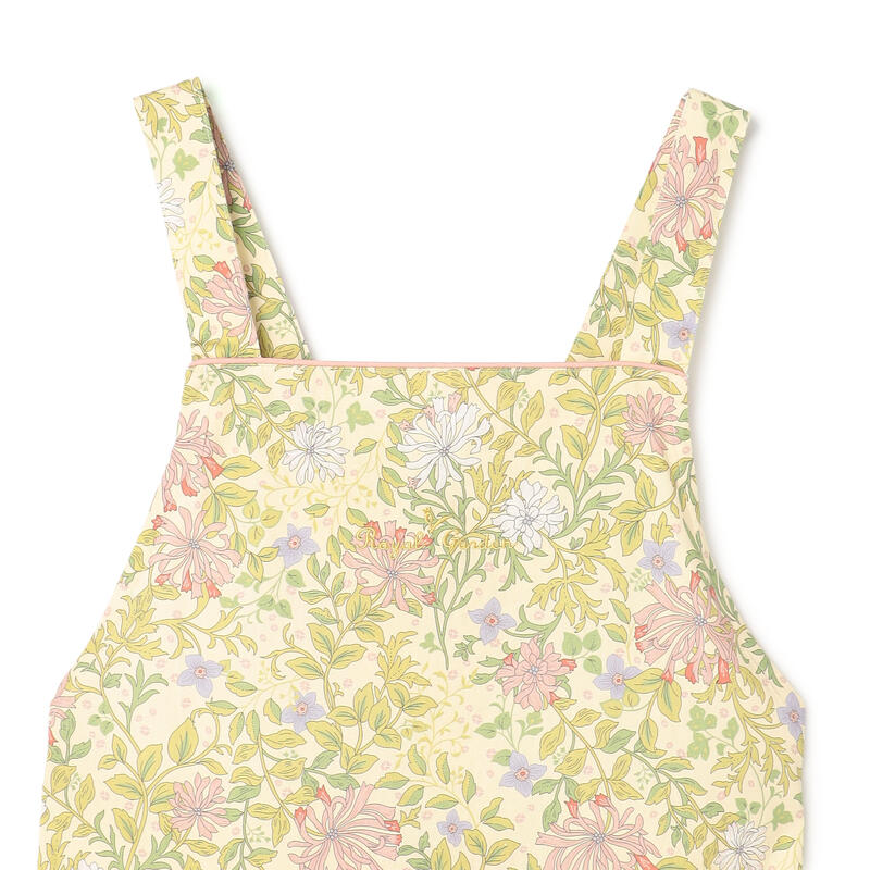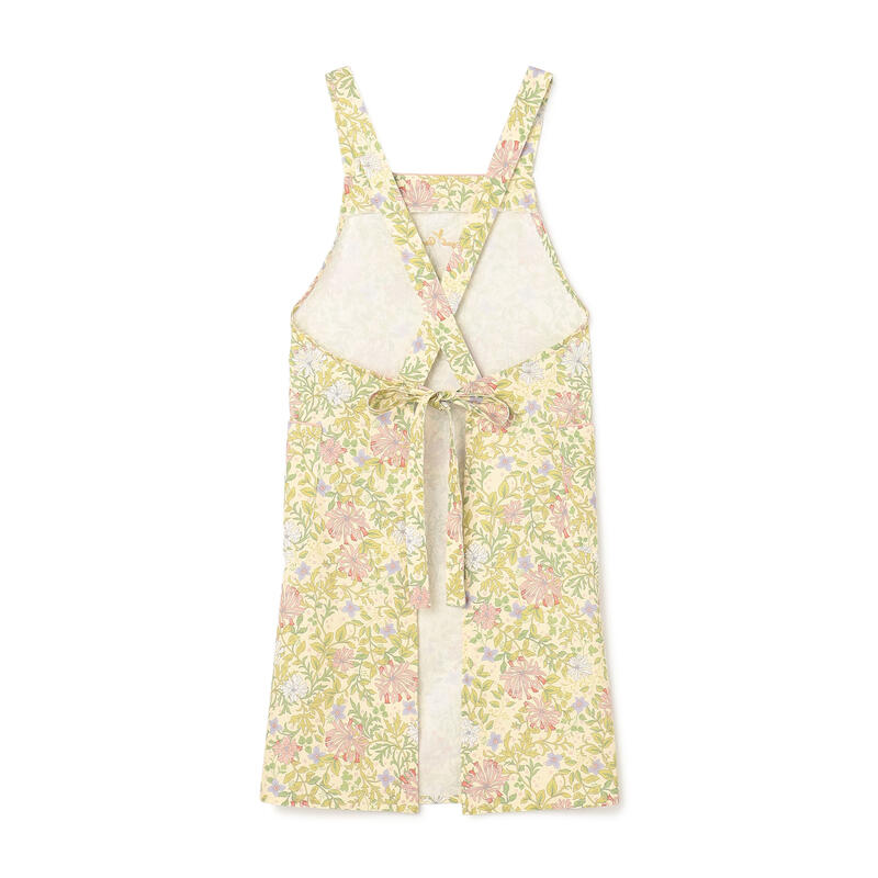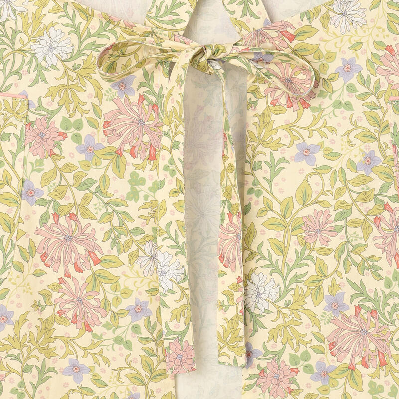 繊細で柔らかい色合いの古典的なアート柄が特徴のエプロンです。