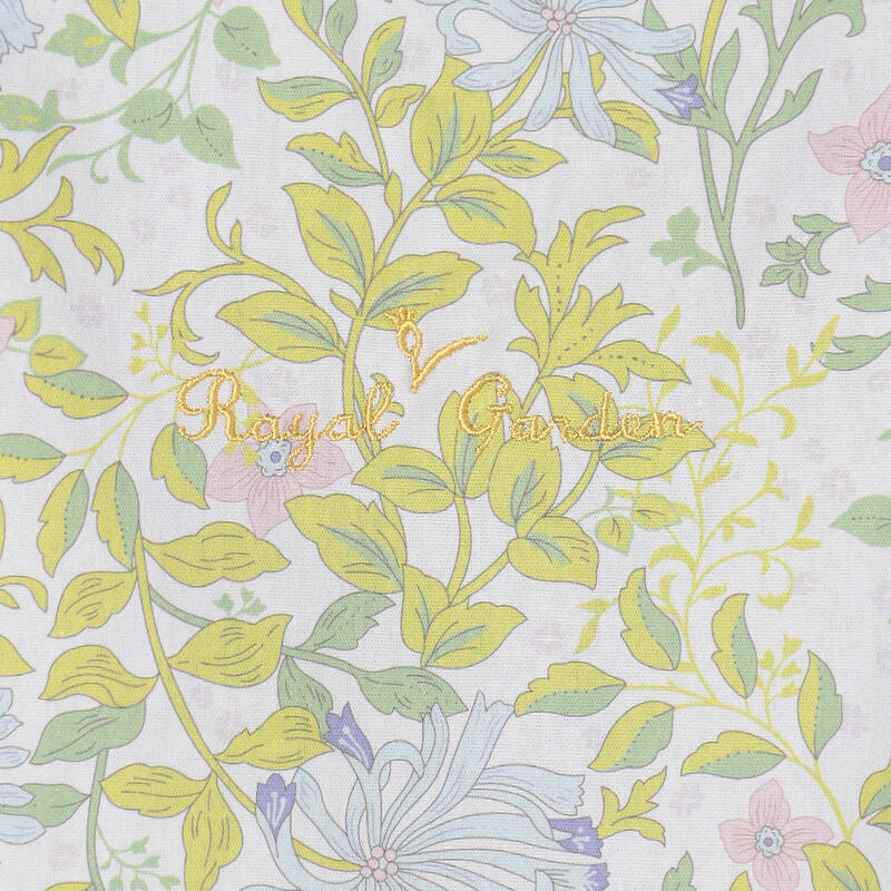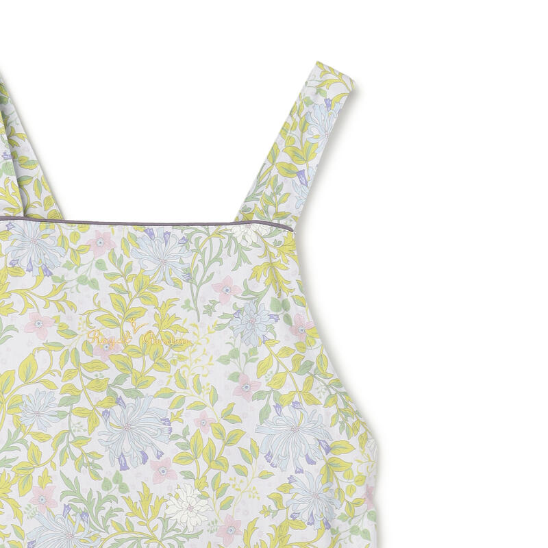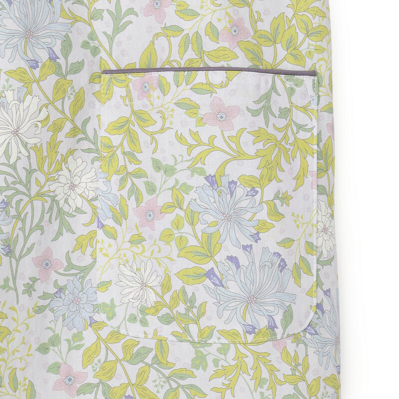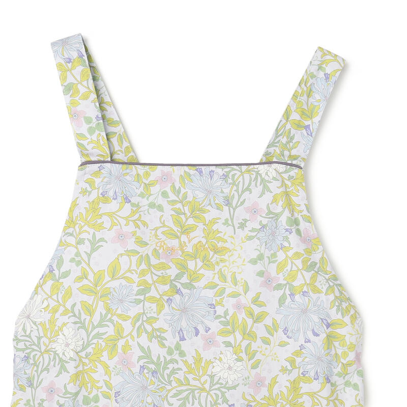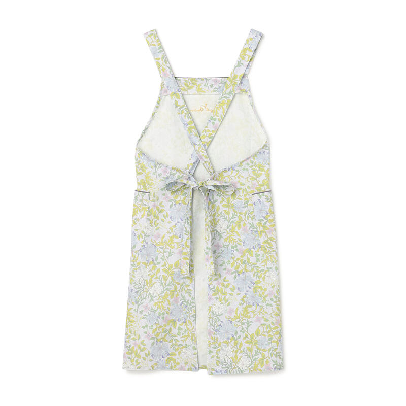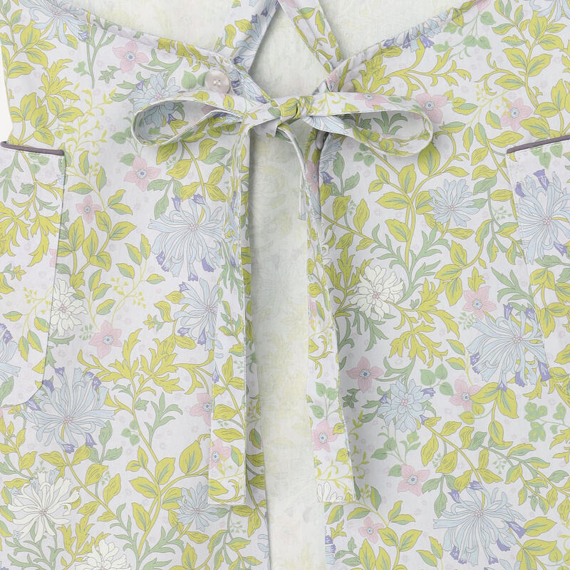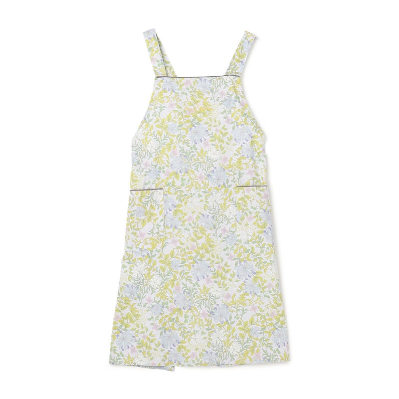 繊細で柔らかい色合いの古典的なアート柄が特徴のエプロンです。
