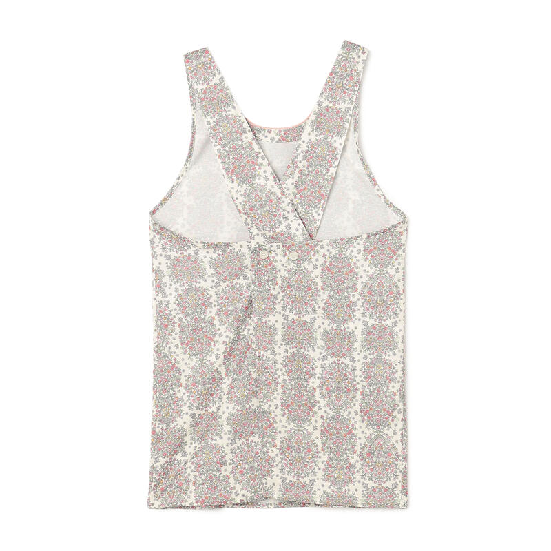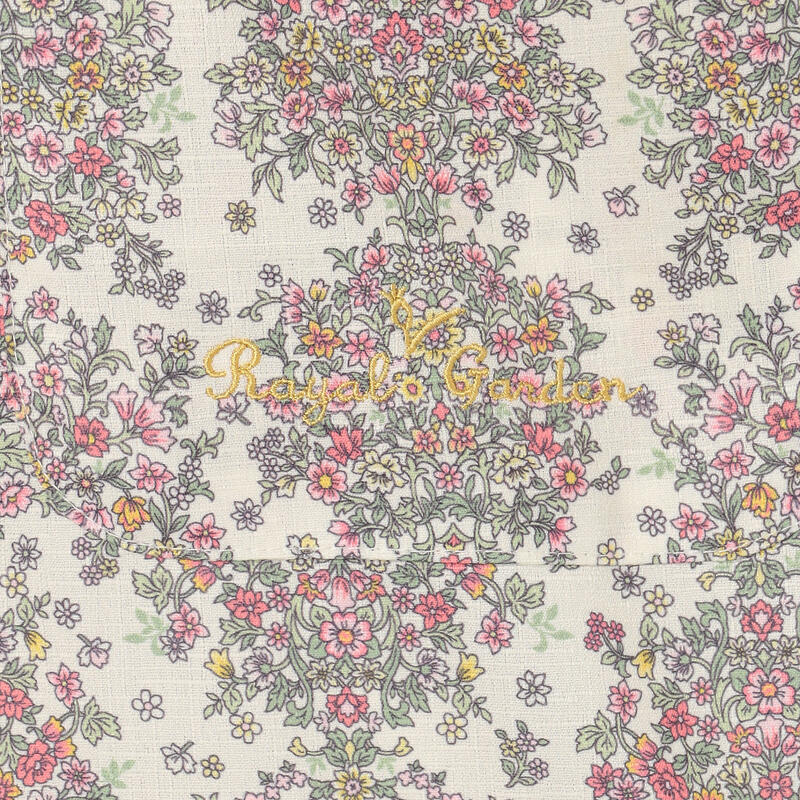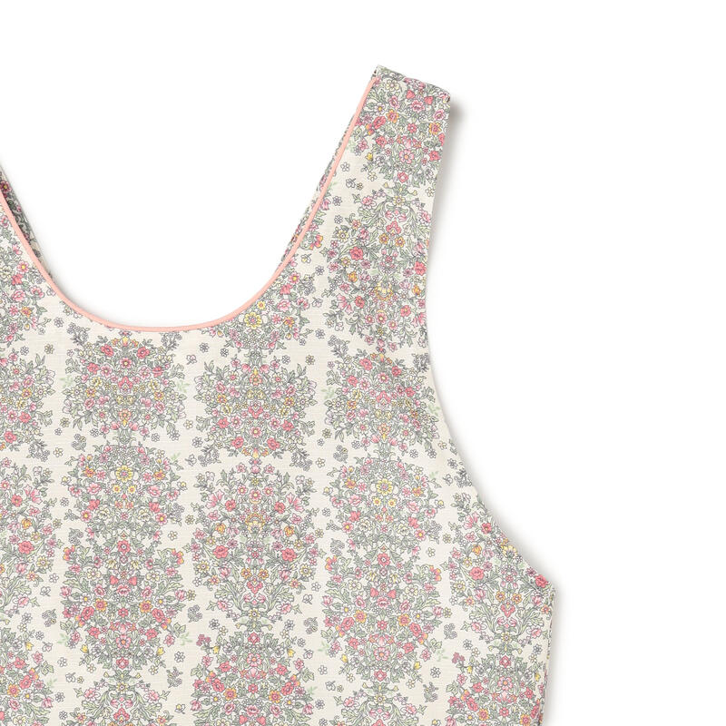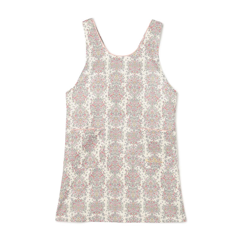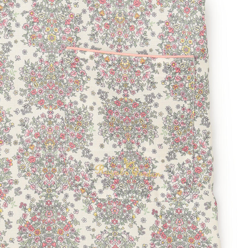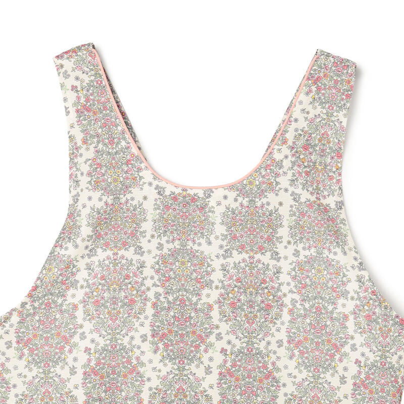 繊細で柔らかい色合いの古典的なアート柄が特徴のエプロンです。