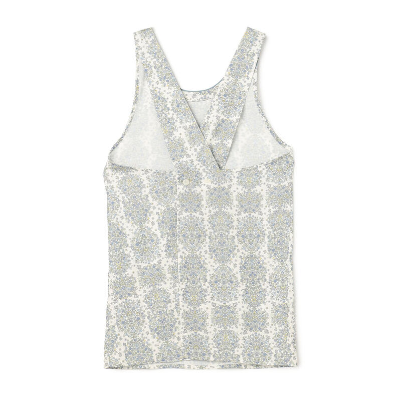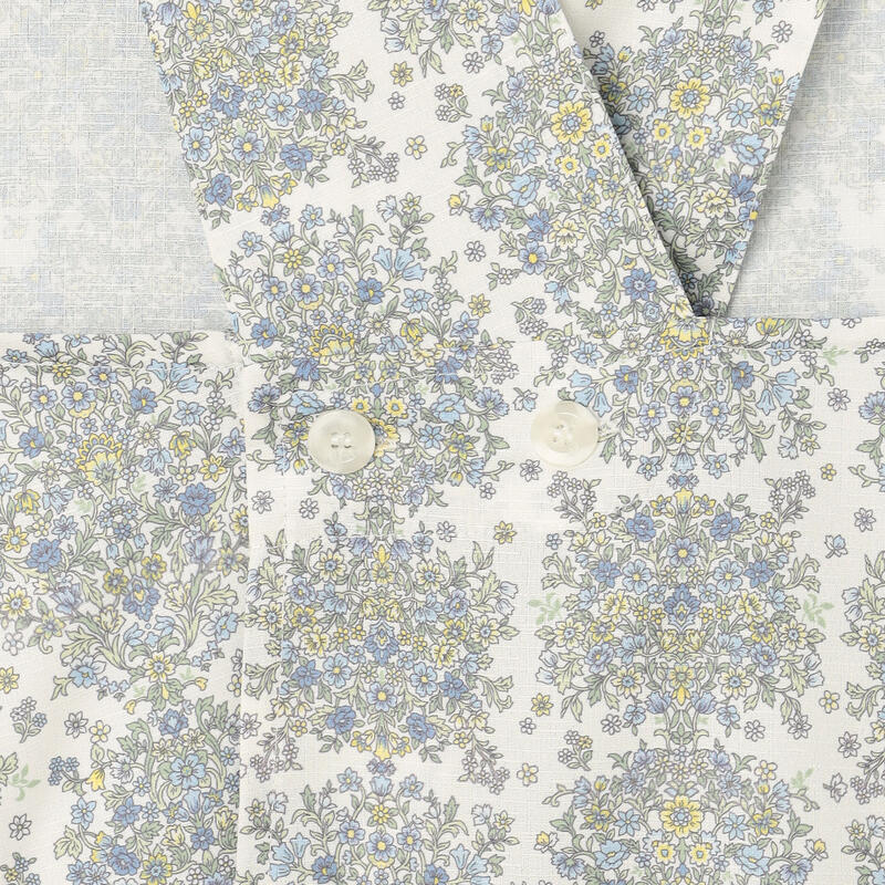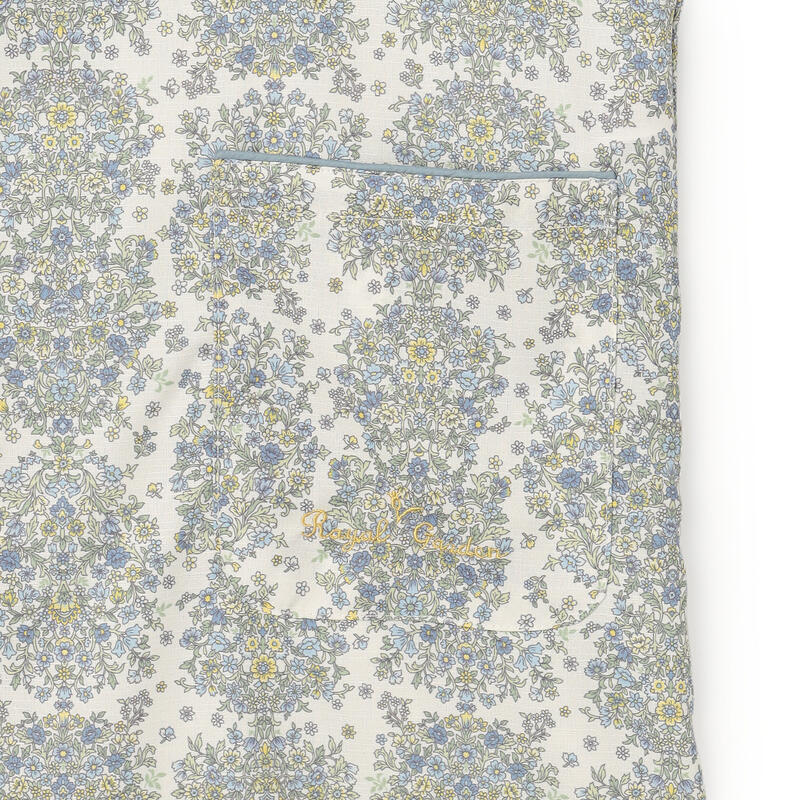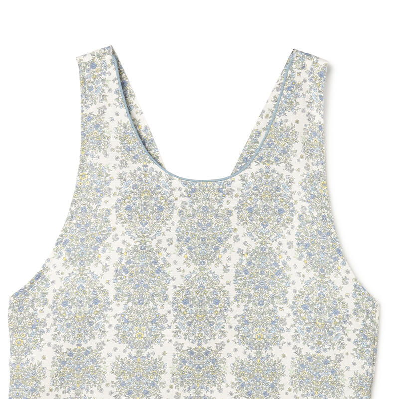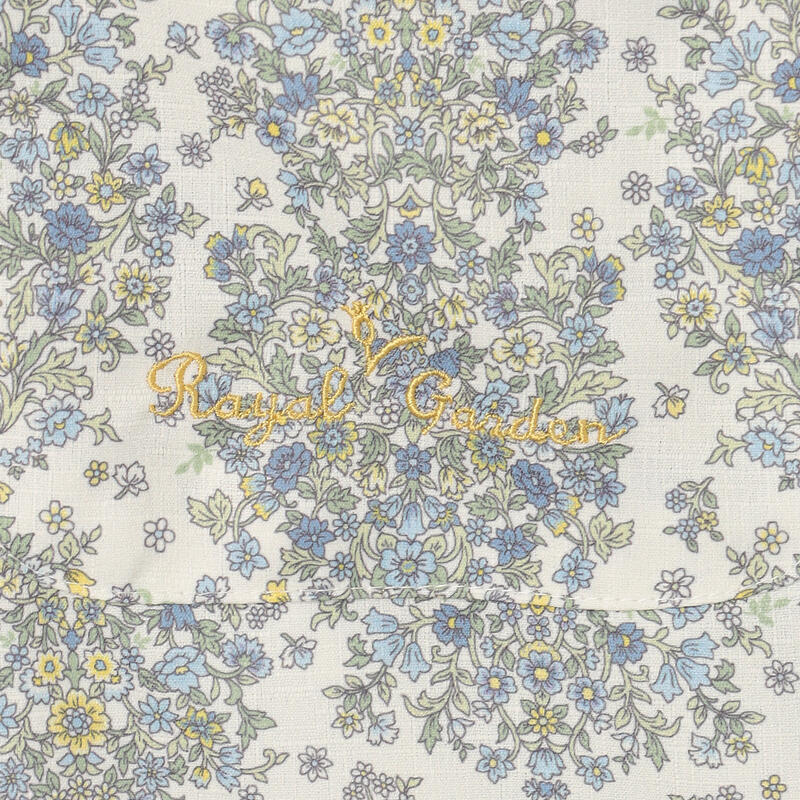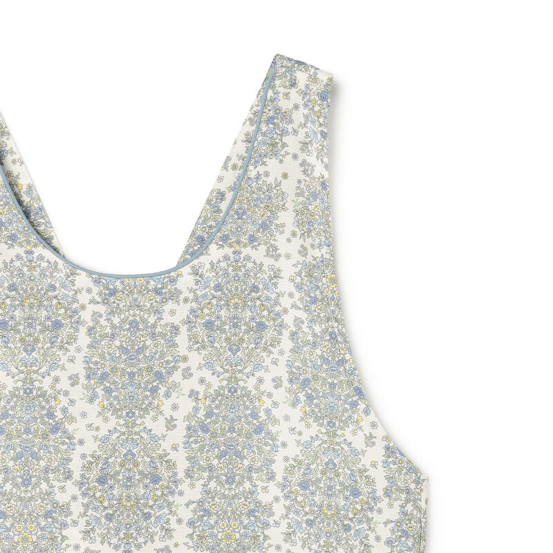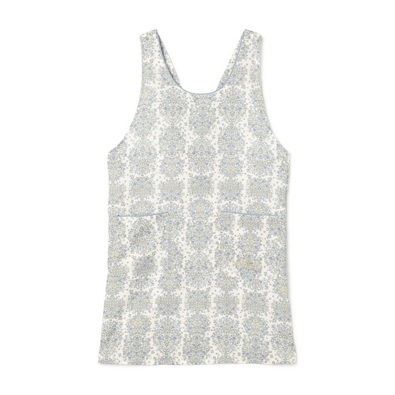 繊細で柔らかい色合いの古典的なアート柄が特徴のエプロンです。