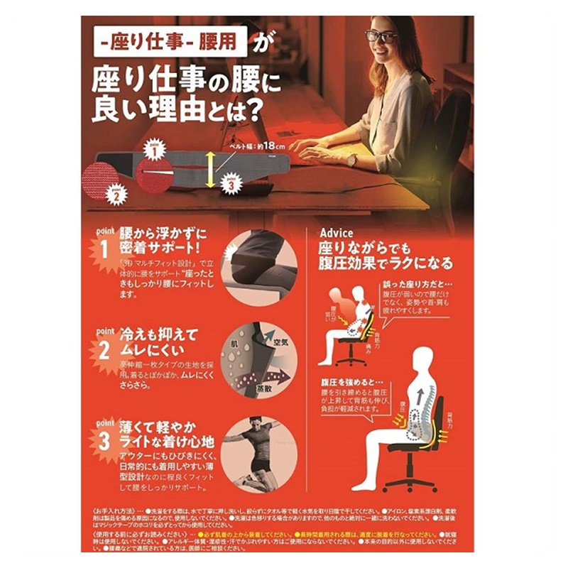 座り仕事でお悩みの方にお勧めする腰サポーター。