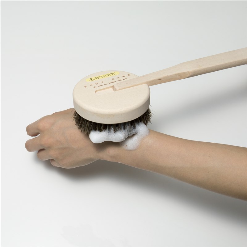背中もスッキリ洗える天然木・天然毛のボディブラシ