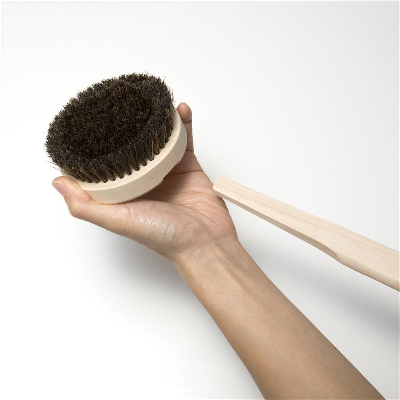 柄とブラシ部分に天然素材を使用。柄を取り外し、ハンドブラシとしても使用できます。