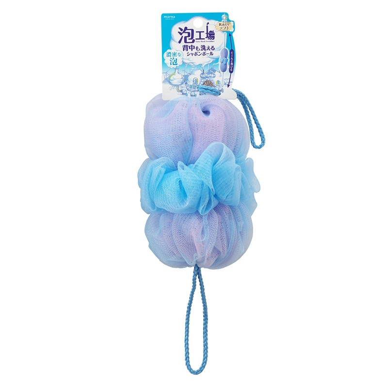 マーナ 泡工場 背中も洗えるシャボンボール ボディタオル ブルー