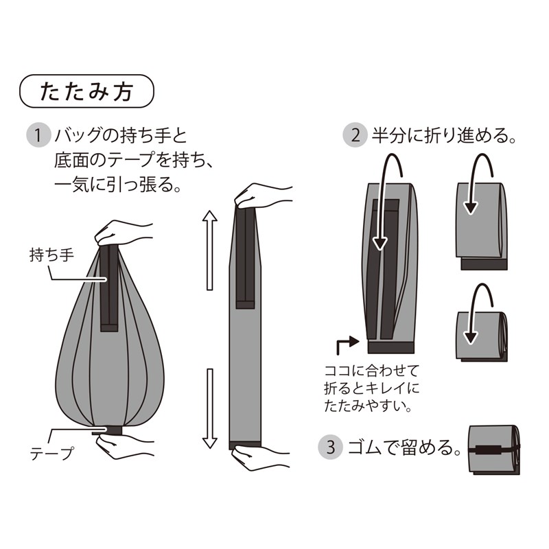 タテ型タイプの一気にたためるコンパクトバッグ。