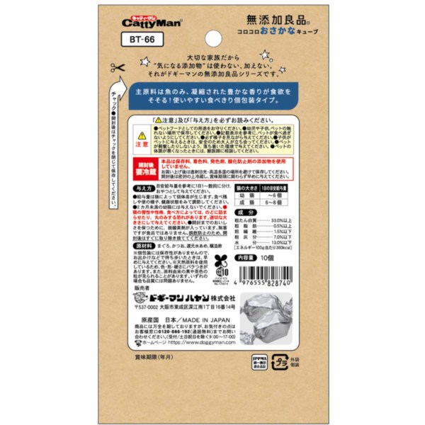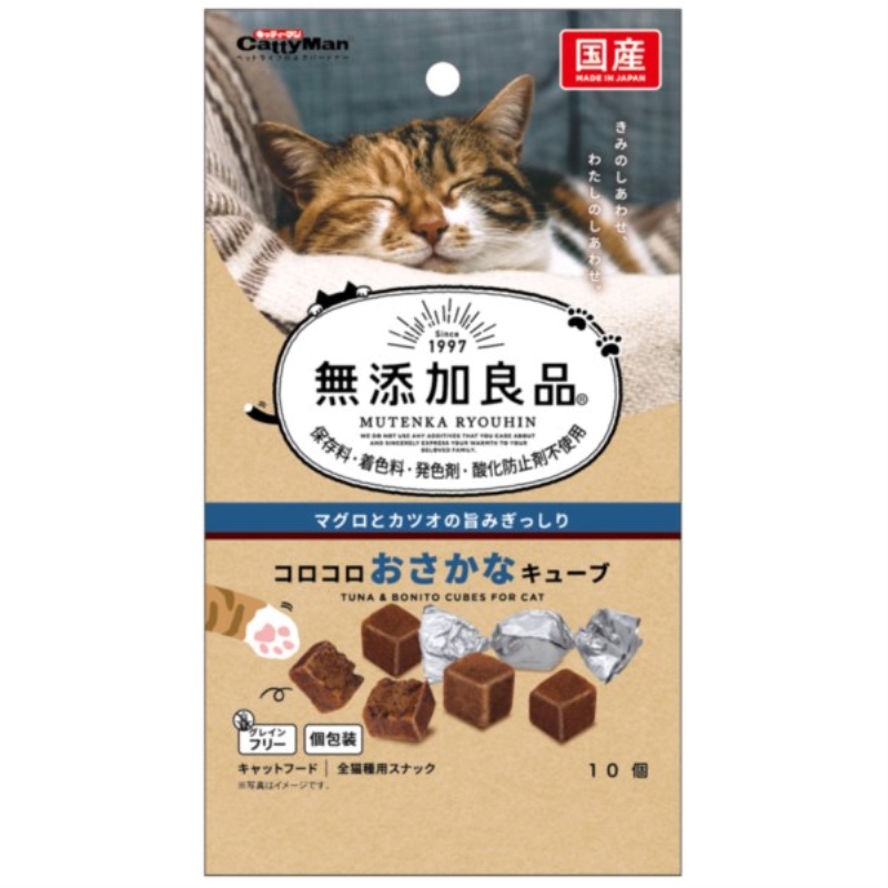 ・主原料にマグロとカツオだけを使用し、香りと味わいをキューブ形状にギュッと凝縮した猫用おやつです。
