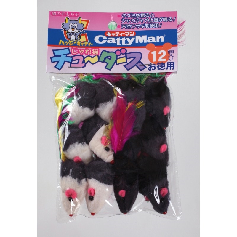 ・ウサギ毛とカラフルな羽つきネズミ、12個セット。・振るとカシャカシャ音が鳴る羽ネズミが12個入ったチューダース。・ネズ