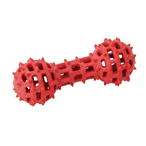 全体に小さなトゲトゲが付いた歯みがき効果のあるラバー玩具。ボールが苦手な愛犬でもくわえやすい形状。