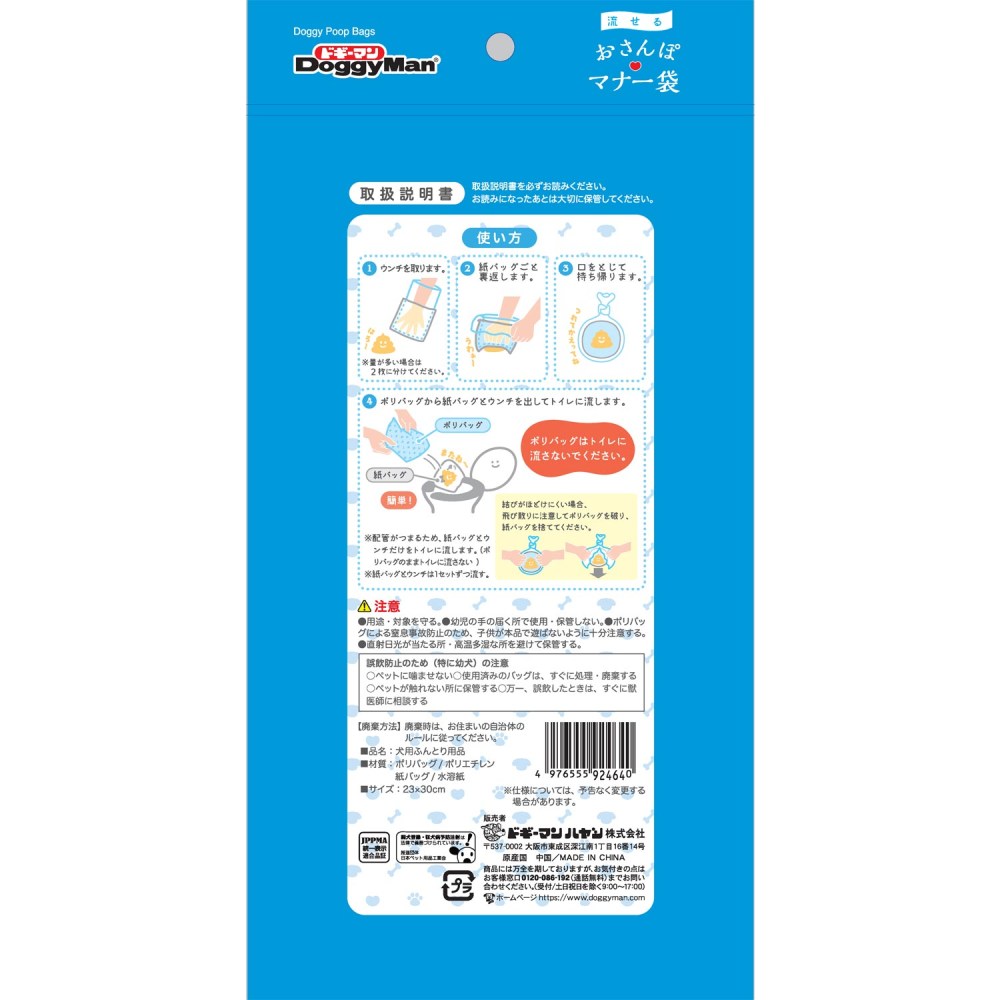 ・犬用の流せるおさんぽマナー袋です。