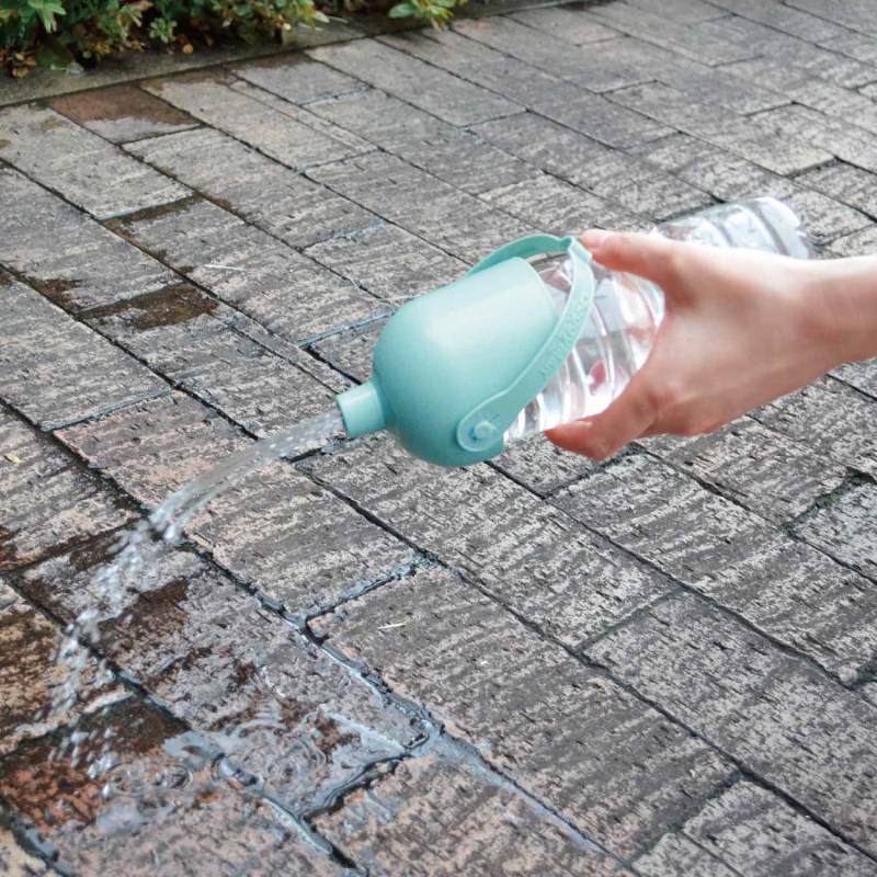 市販のペットボトルを取りつければ、水飲み&マナー水洗に。ユニークな形で機能的