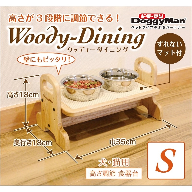 食べやすい姿勢で快適に食事ができる素朴で温かみのある木製の食器台。高さ3段階に調節可能。