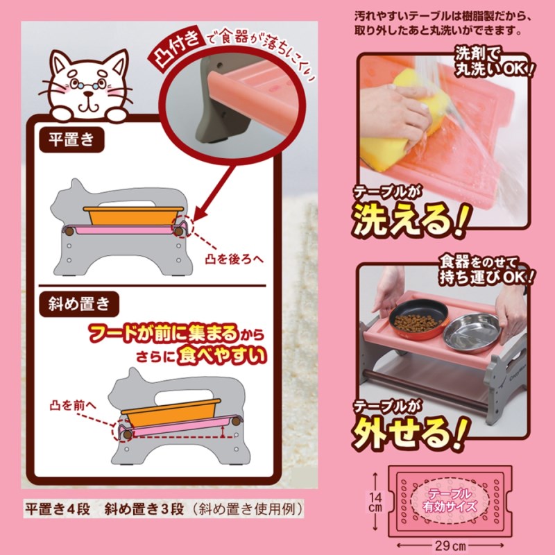 ・樹脂製でお手入れが簡単「外せる!」「洗える!」ねこちゃん用テーブルです。
