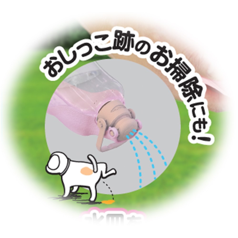 ・「水皿で」ドリンカーに、「シャワーで」おしっこ跡の掃除に使える水筒です。
