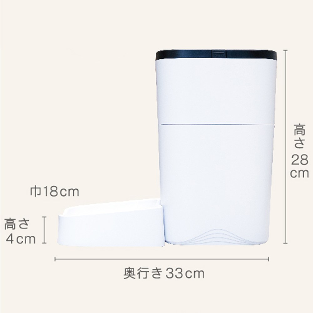 ・タンク容量約1kg(3L)1日の給餌量48gの猫ちゃんなら約20日分ストック可能。