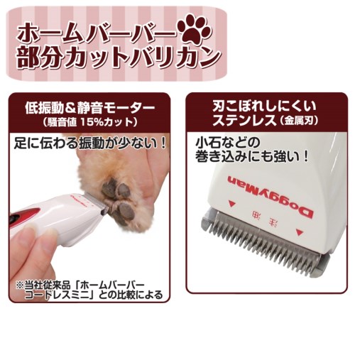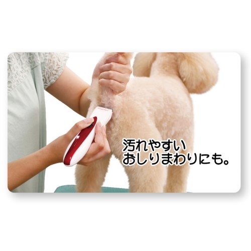 ペット美容専用カット刃。乾電池式。低振動&静音モーターで足に伝わる振動が少ない!汚れやすいおしりまわりにも。