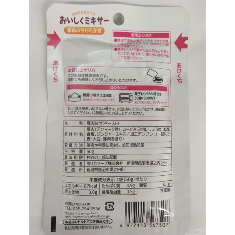 ご家庭では手間のかかるミキサー食を、便利に使えるレトルトパウチ食品にしました。