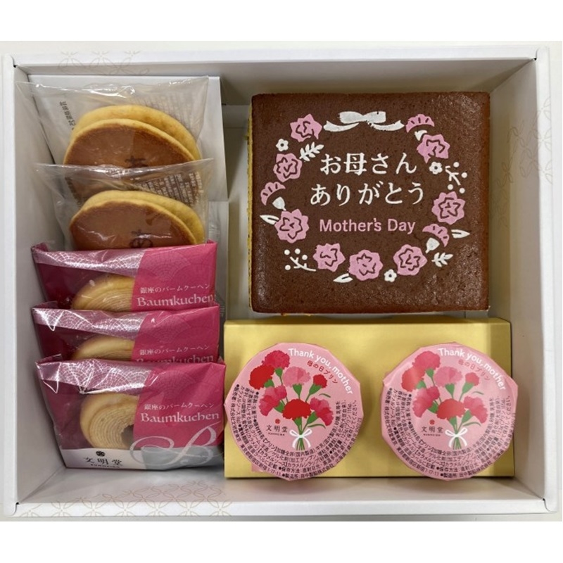 母の日カステラ1号×1、母の日銀座プリン×2、銀座のバームクーヘン×3、母の日月三笠×2 【特定原材料:小麦、卵、乳】