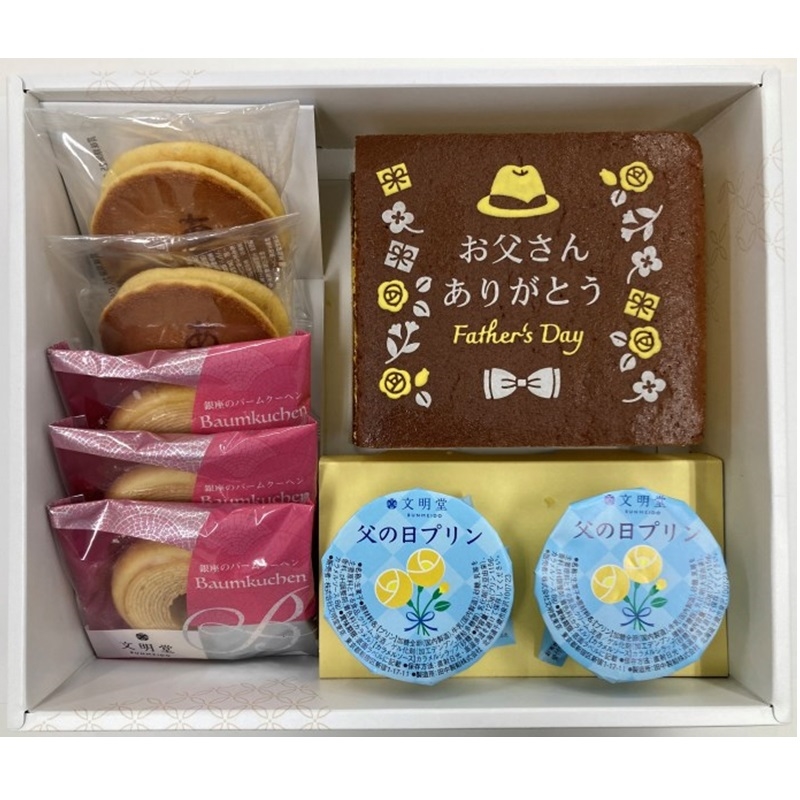 父の日カステラ1号×1、父の日銀座プリン×2、銀座のバームクーヘン×3、父の日どら焼き×2