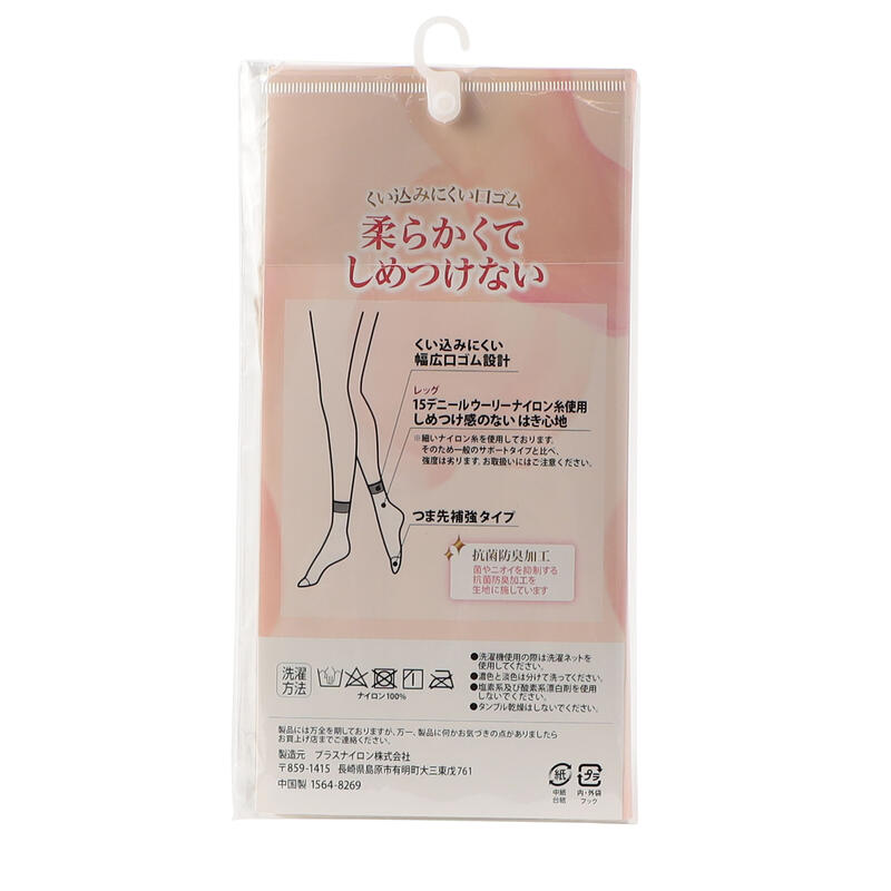 幅広タイプの口ゴムでくい込みにくく、つま先補強でやぶれにくく仕上げました。