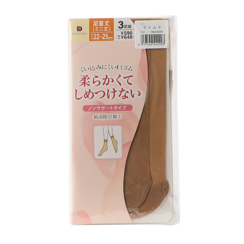 グレイスフルデイズ 柔らかくてしめつけない 足首丈ストッキング 3足組