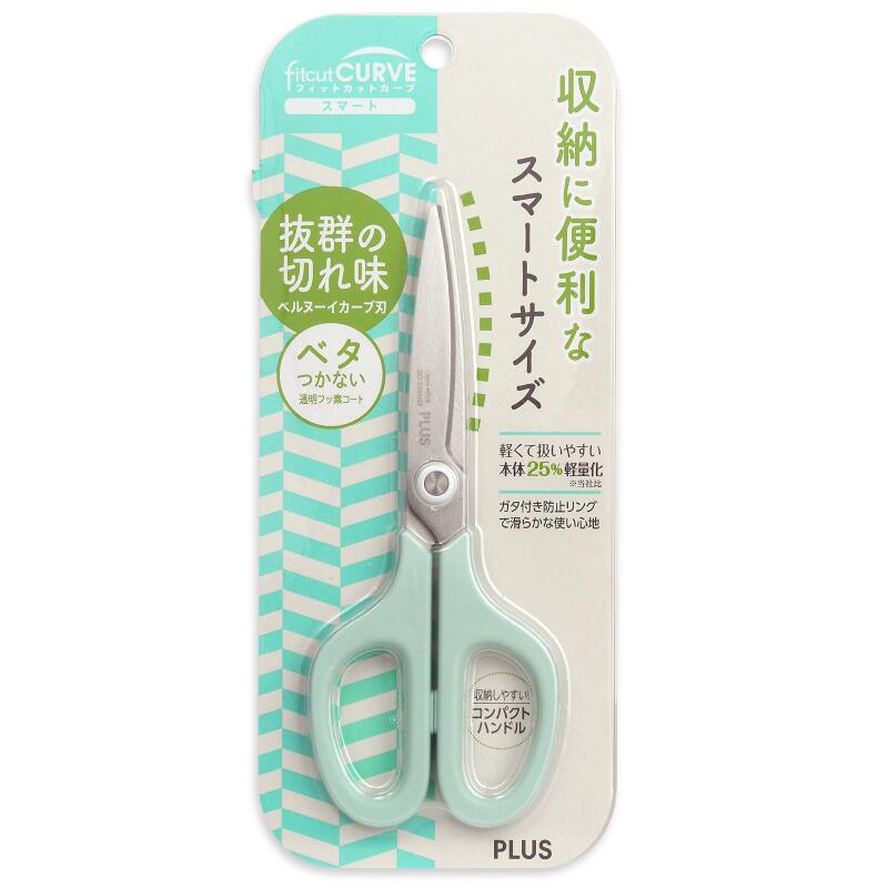- はさみ、ハサミ、カーブ刃、よく切れる、切りやすい、安心、機能美、便利、ぷらす、プラス、PLUS、ジム、事務文具、ぶんぐ、ブング